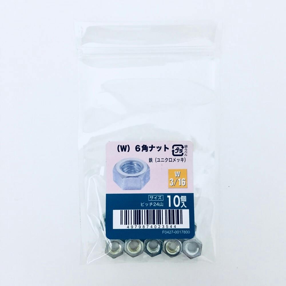 1種(片面取り)の一般的な六角ナットで、高さは呼び径の8割です。冷間圧造製品です。材質は鋼で耐食性向上のため、ユニクロめっき(薄青っぽい色合い)がしてあります。規格はJIS B 1181 附属書JAをご覧ください。