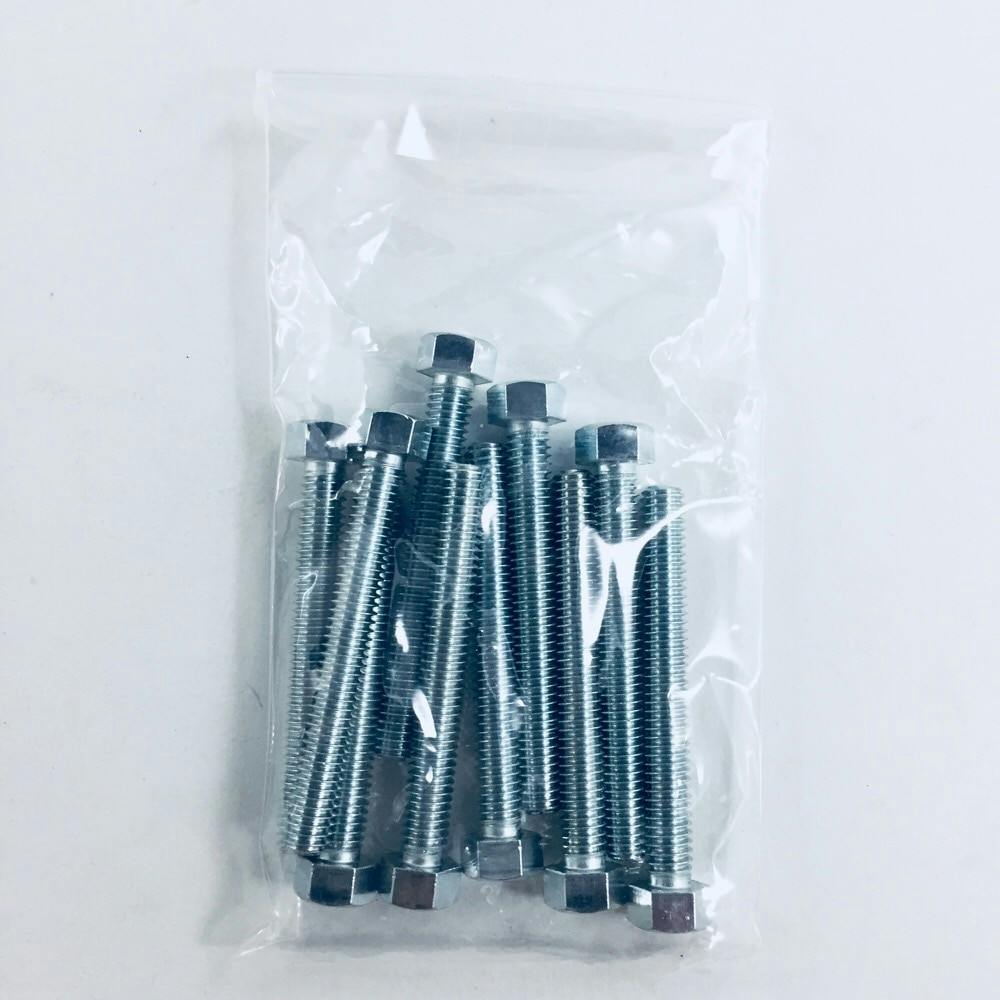 ウイットねじの六角ボルトで胴の全体にねじが切ってあります。材質は鋼で耐食性向上のため、ユニクロめっき(薄青っぽい色合い)がしてあります。