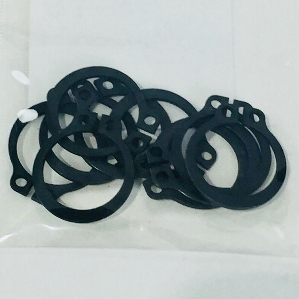 位置決めしたい所の軸に円周溝を設け、この溝に入れて軸方向の動きを止めます。着脱には専用工具(プライヤー)が必要ですが、作業は簡単です。呼び径は軸の外径です。規格はJIS B 2804 をご覧ください。材質はばね用鋼。
