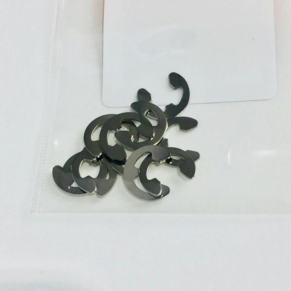 位置決めしたい所の軸に円周溝を設け、この溝に入れて軸方向の動きを止めます。呼び径は軸の外径ではなく、溝の径です。取付けには専用工具を使うと便利です。ステンレス鋼(SUS304相当)なので耐食性、耐熱性に優れています。規格はJIS B 2805 をご覧ください。