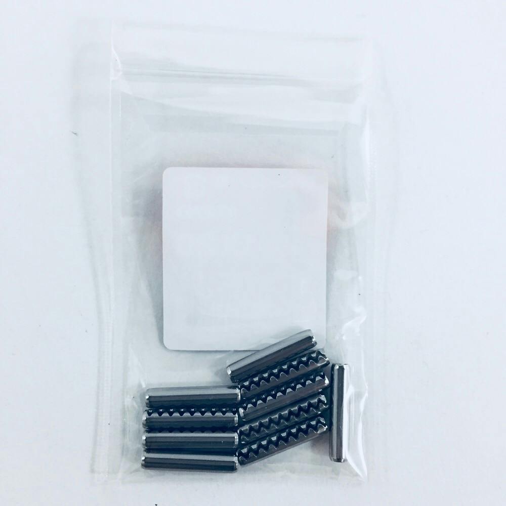 波状の割れ目を持った円筒状のピンで、打込んだ時に割れ目の隙間が少し残る状態になります。真円度が出ているので、円周全面が接触します。穴はドリル加工でよく、平行ピンに比べ低コストで済みます。ステンレス(SUS420J2)なので耐食性、耐熱性に優れています。
