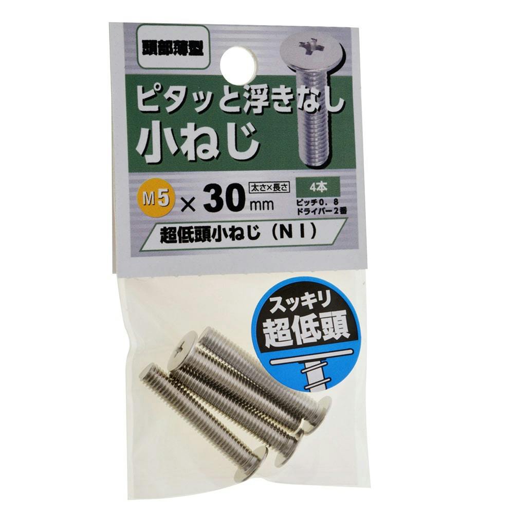 材質は鋼でニッケルめっき。頭部の高さが薄型な為、取付面の凸部を低くできます。