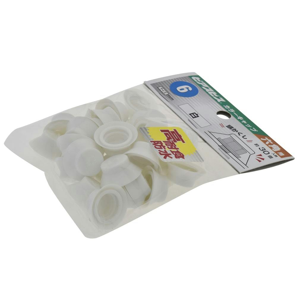 ピアスビス カラーキャップ 六角用 白 M6mm 30個入
