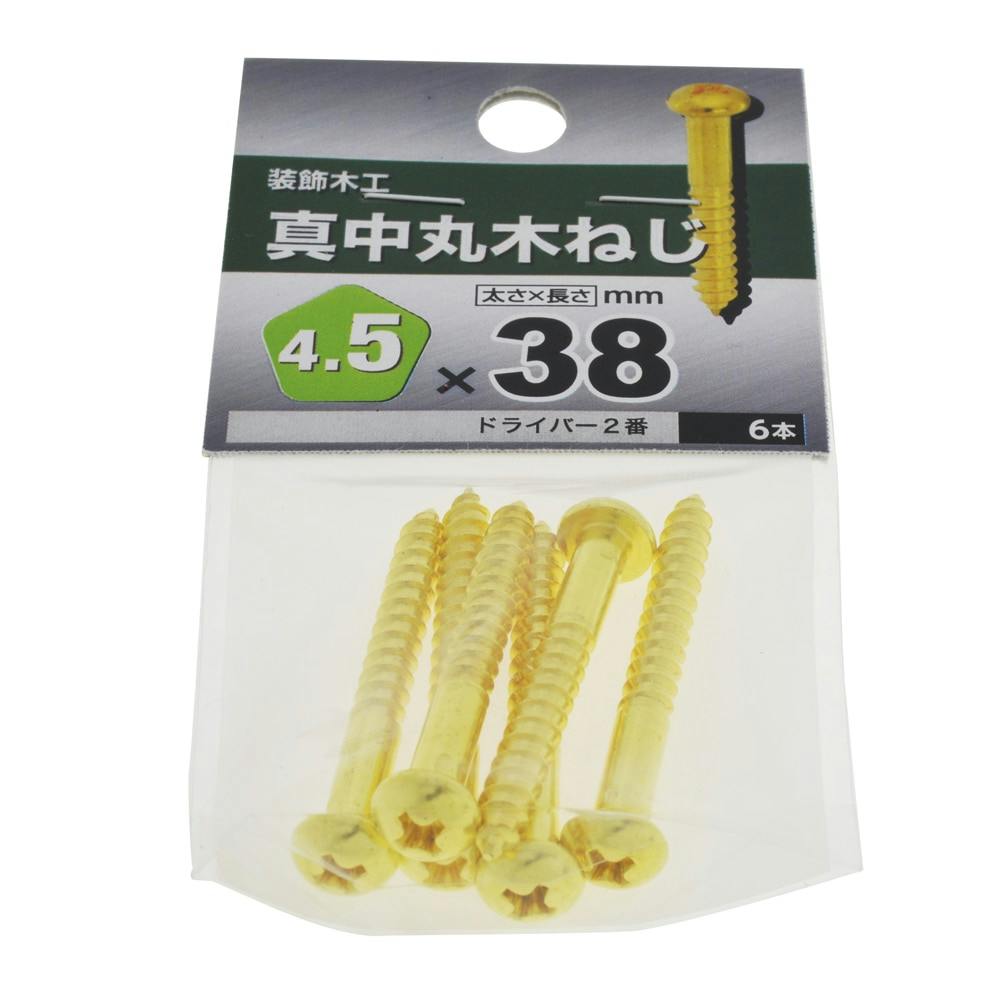 十字穴付きの丸頭ねじで、木材専用です。打ち込む時に木材などにできる破損を防ぐために、ピッチが粗くなっています。黄銅なので金属光沢が美しく、耐食性に優れています。規格はJIS B 1112 をご覧ください。