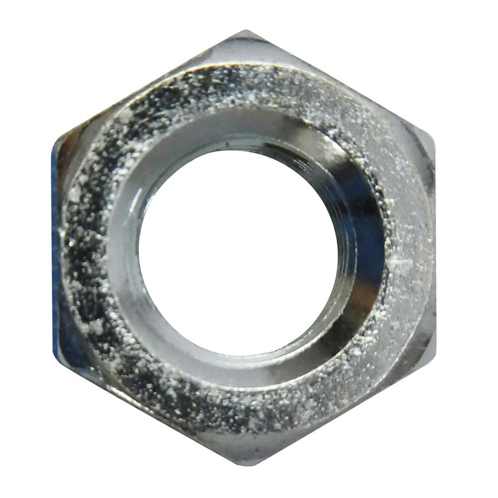 1種(片面取り)の左ねじ六角ナットです。高さは呼び径の8割です。材質は鋼で耐食性向上のため、ユニクロめっき(薄青っぽい色合い)がしてあります。規格はJIS B 1181 附属書JAをご覧ください。