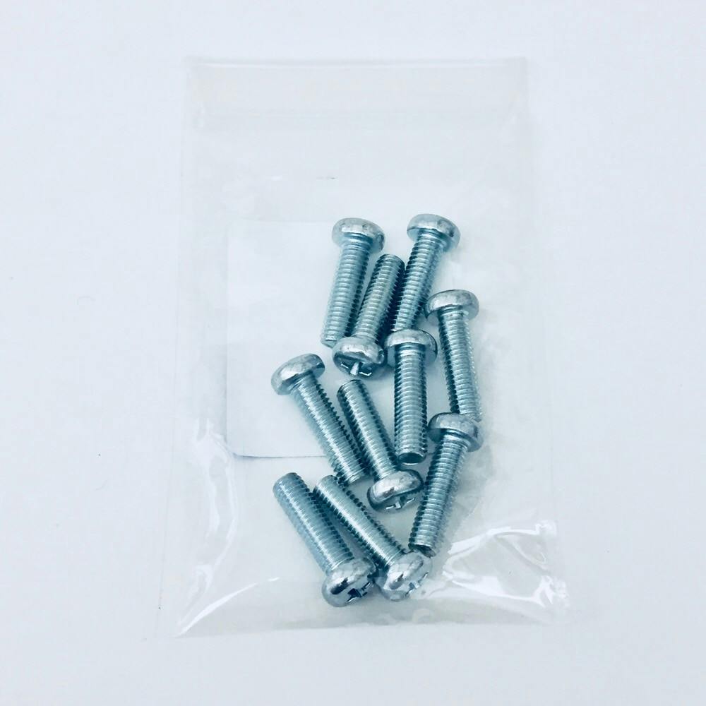 十字穴付きのなべ頭小ねじです。頭部が出ても差し支えない所に使われます。材質は鋼で耐食性向上のため、ユニクロめっき(薄青っぽい色合い)がしてあります。規格はJIS B 1111 附属書(M3以上)をご覧ください。