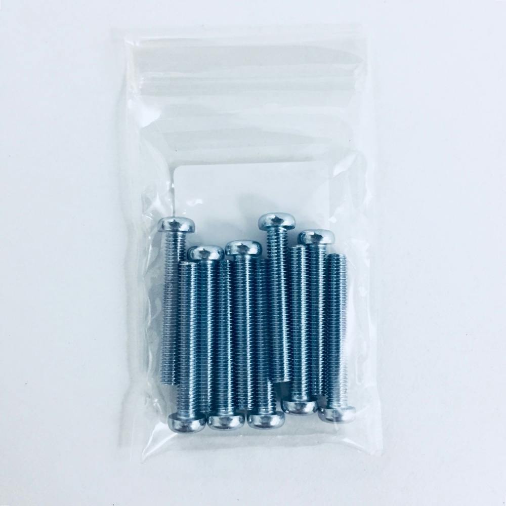 十字穴付きのなべ頭小ねじです。頭部が出ても差し支えない所に使われます。材質は鋼で耐食性向上のため、ユニクロめっき(薄青っぽい色合い)がしてあります。規格はJIS B 1111 附属書(M3以上)をご覧ください。