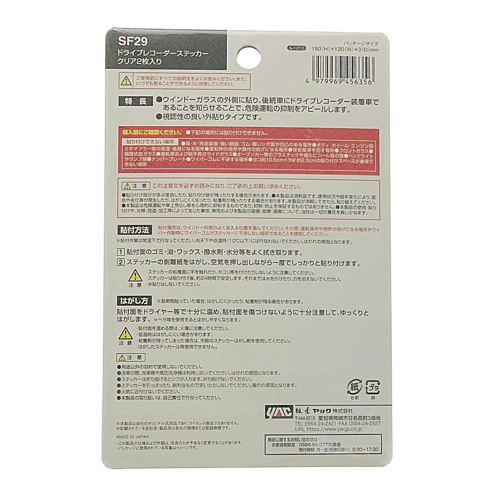 ドライブレコーダーステッカー クリア SF-29 2枚入り