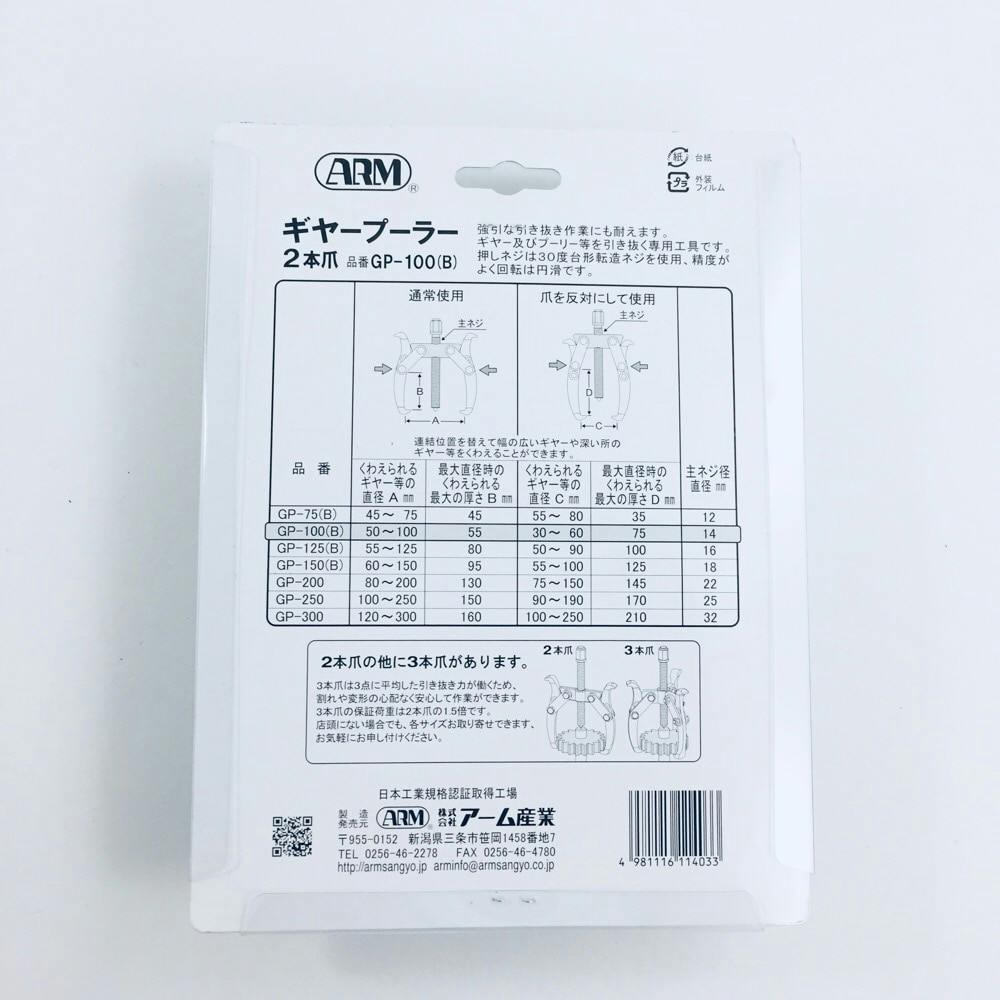 アーム産業 ARM ギヤープーラー 2本爪 100mm GP-100B