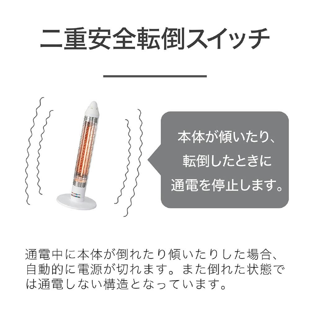 ■消費電力:600W ■電力切換スイッチ:600W/300W/切 ■コード長:約1.5m\n■二重安全転倒スイッチ:◯\n■本体サイズ:約250(W)×250(D)×636(H)mm\n■本体質量:約1.2kg