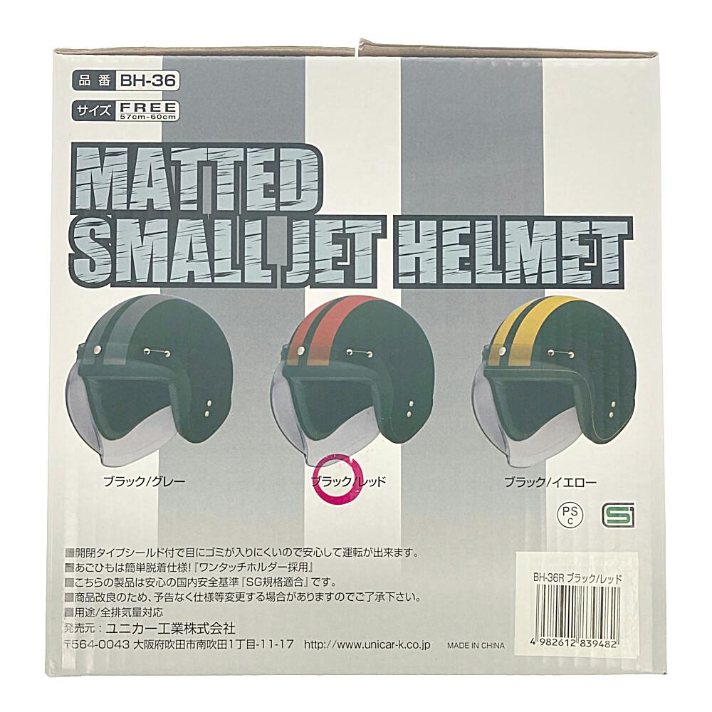 ユニカー工業 MATTEDスモールジェットヘルメット ブラック/レッド BH-36R