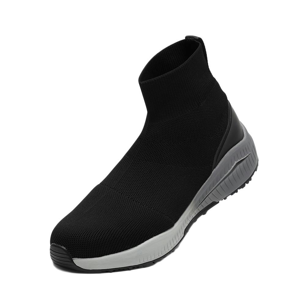 ●マンダムニットSOCのブーツタイプ。先芯があることを感じさせない、余分な装飾を排したシンプルなデザインのプロスニーカーです。足当たりの軟らかい伸縮性のあるニットと、クッション性に優れた高反発EVAミッドソールが快適な履き心地を提供します。