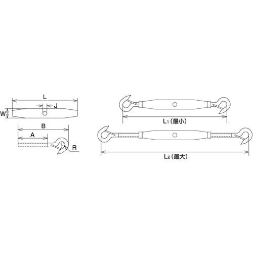 【CAINZ-DASH】水本機械製作所 ステンレス パイプターンバックル 外れ止め付(フック&フック) 捻子径4分 A-1829【別送品】