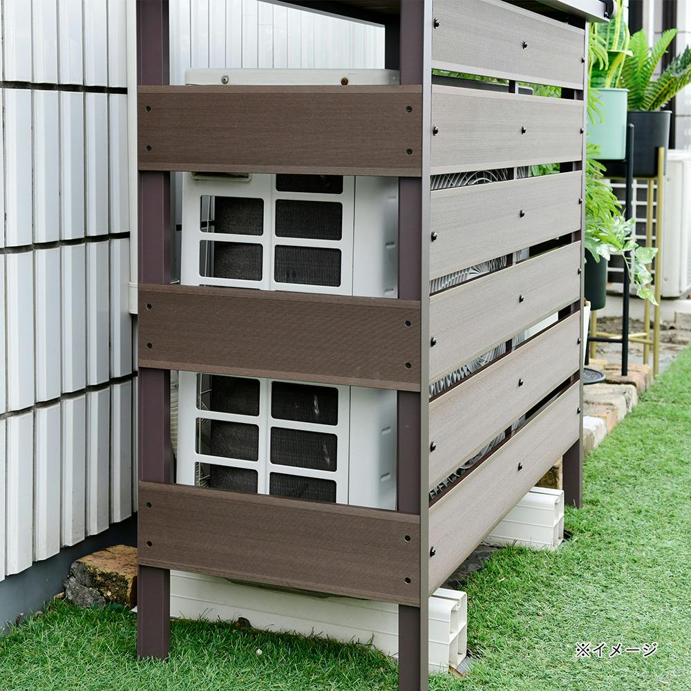 ●フロントバー、サイドバー、天板部に人工木を使用することで、まるで天然木のような自然な木の質感を楽しめる人工木エアコン室外機カバー(大型タイプ) ●国内最大級のエアコン室外機(29畳用)にも設置可能