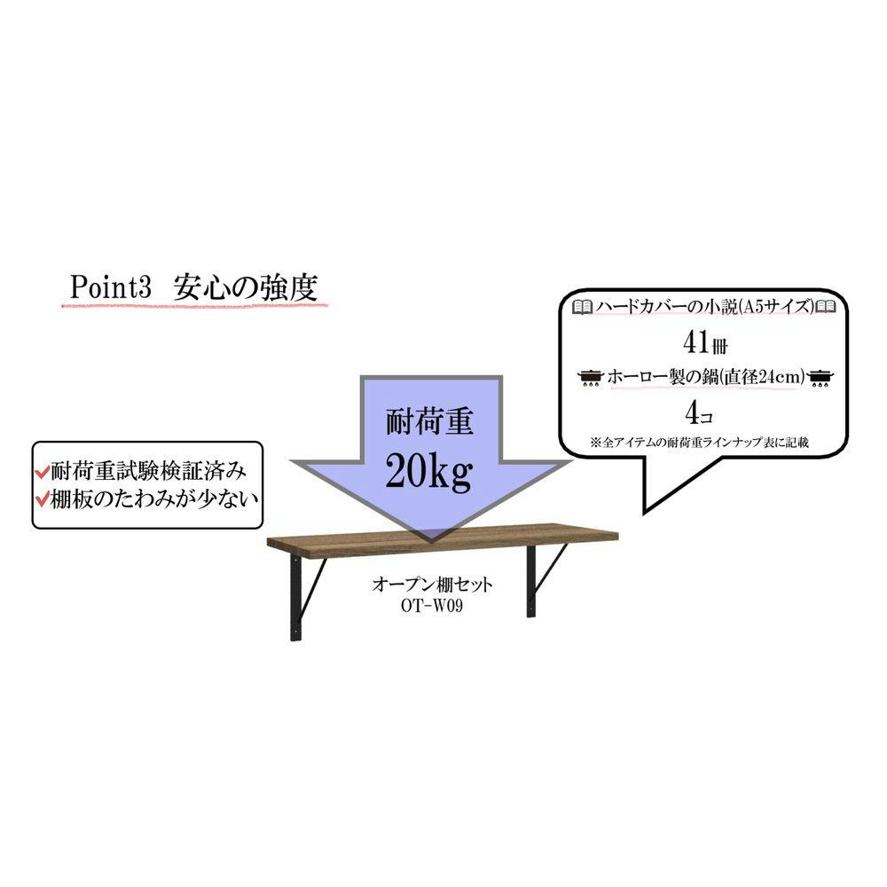 ●棚板:1枚。●オープン棚ハンガー金物本体(黒):1つ。●タッピングネジ トラス小頭(黒)φ4×40:4本。●タッピングネジ ナベ頭(黒)φ4×15:4本。