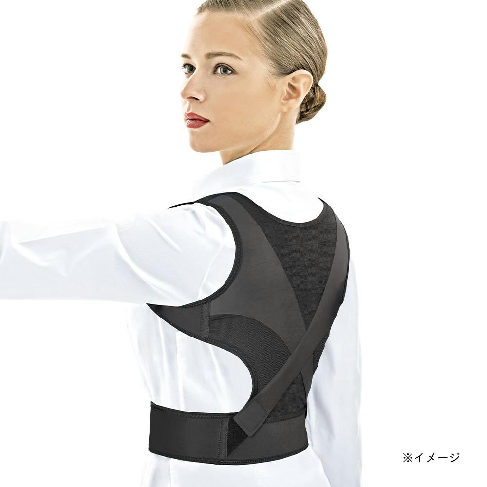 X型背面調整ベルトで肩甲骨を引き寄せる力、胸を開く力を調整出来ます