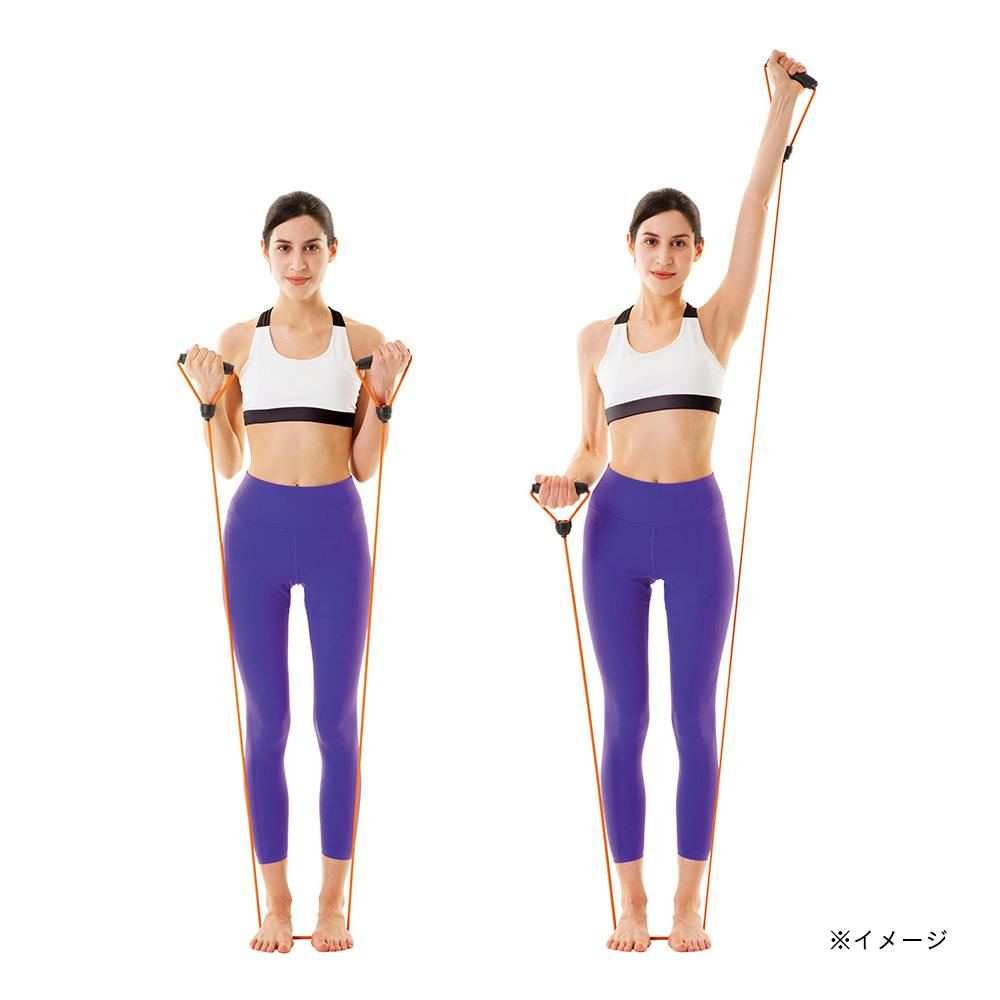 ハンドルを握ってストレッチロープを引き伸ばすことにより、上半身及び下半身の筋トレが可能です。