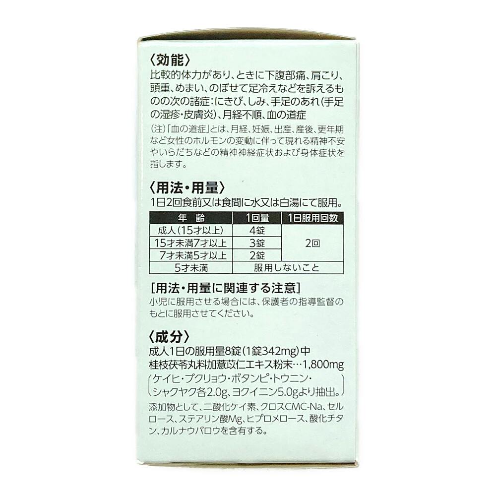 成人1日の服用量8錠(1錠342mg)中/桂枝茯苓丸料加ヨク苡仁エキス粉末:1800mg(ケイヒ・ブクリョウ・ボタンピ・トウニン・シャクヤク各2.0g、ヨクイニン5.0g より抽出。)