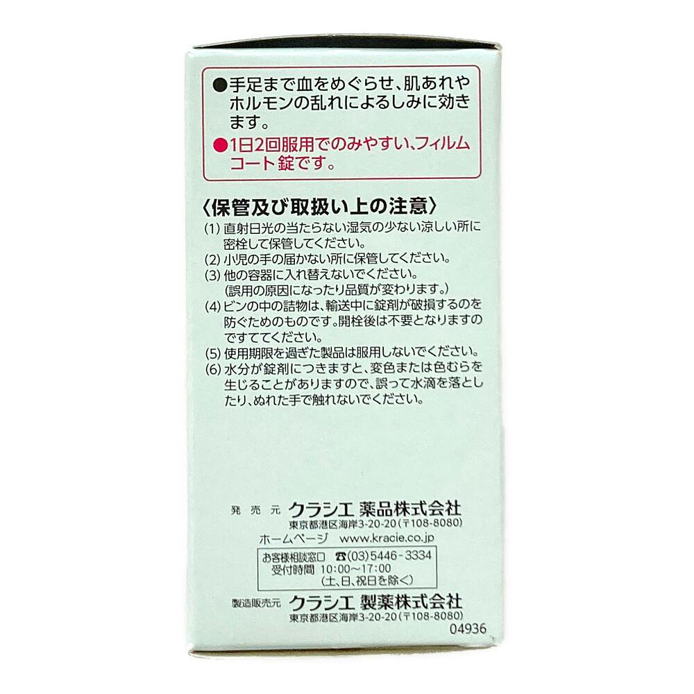 ●しみ、手足の肌あれに/手足まで血をめぐらせ、肌あれやホルモンの乱れによるしみに効きます。●漢方製剤●成人26日分●1日2回でのみやすい、フィルムコート錠です。