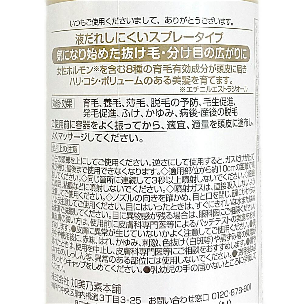 女性ホルモン含む8種の有効成分配合の エアゾールタイプ育毛剤
