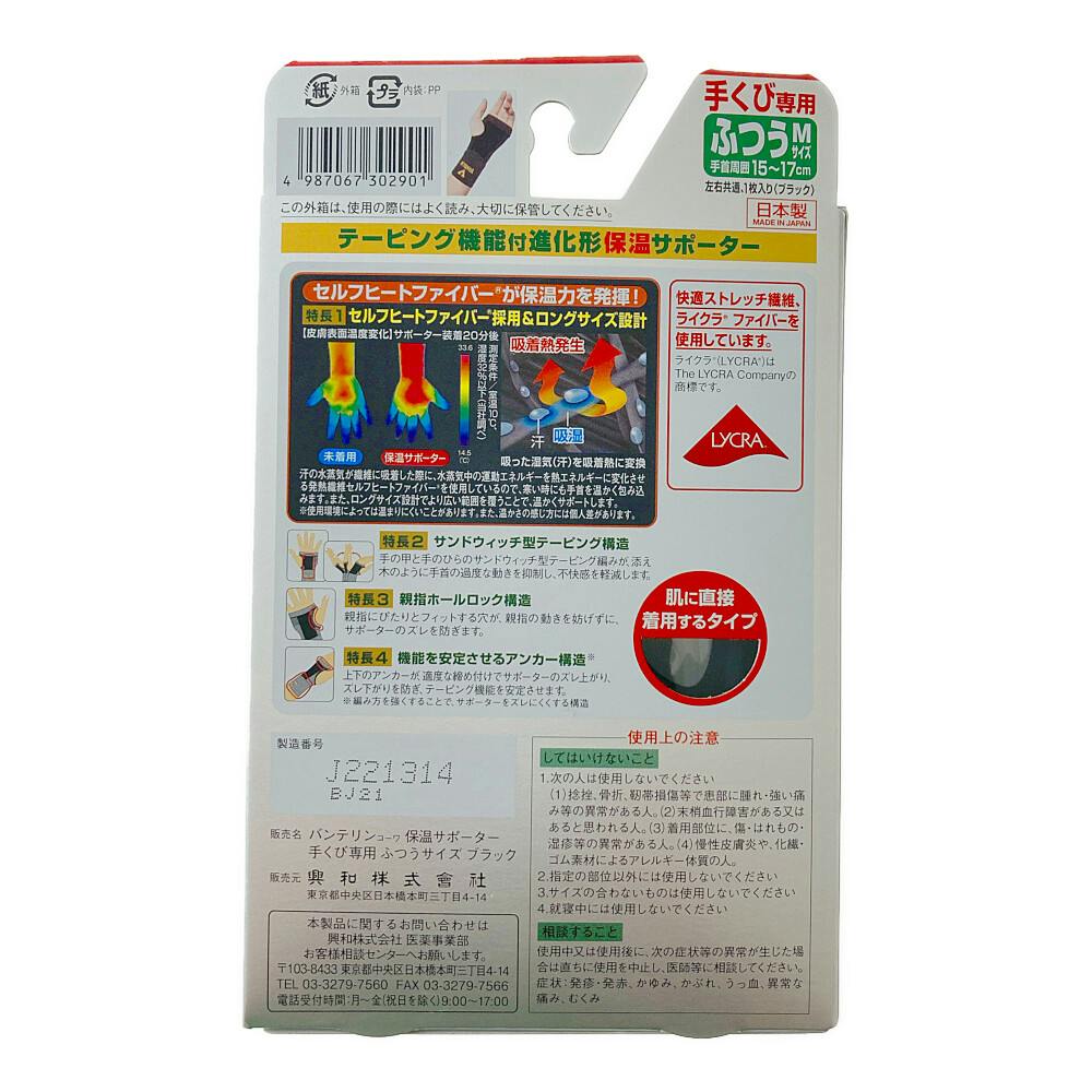 ●手くび専用●特許技術のテーピング構造でしっかりサポート!●吸湿発熱素材が、手首を温かく包み込む●日本製