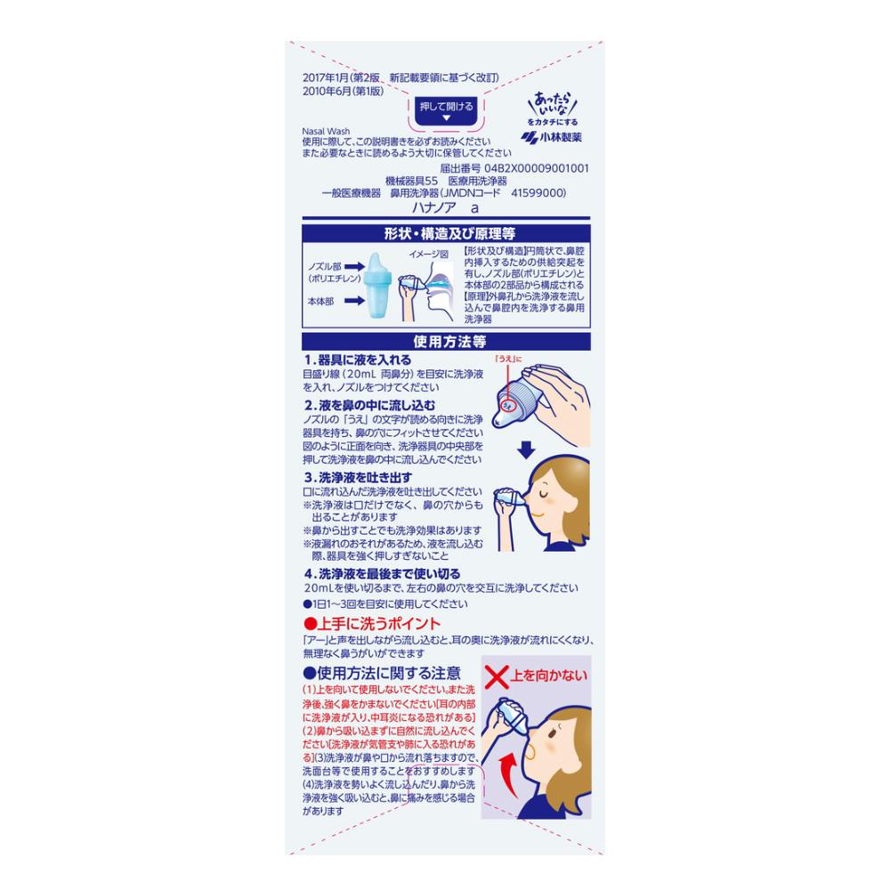 15才未満の方、嚥下障害がある方は使用しない。耳鼻咽喉科の治療受診者は使用前に医師に相談。洗浄後強く鼻をかまない。鼻の炎症・鼻づまりがひどいときは使用しない。目に入らないように注意する。使用中に異常が生じた場合はこの箱を持って医師に相談する。