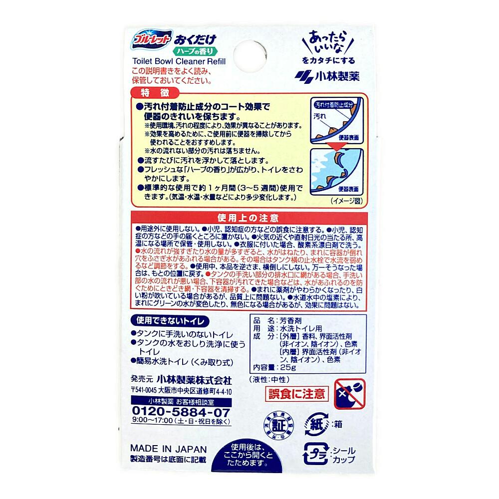 小林製薬 ブルーレット おくだけ ハーブ つめ替 25g