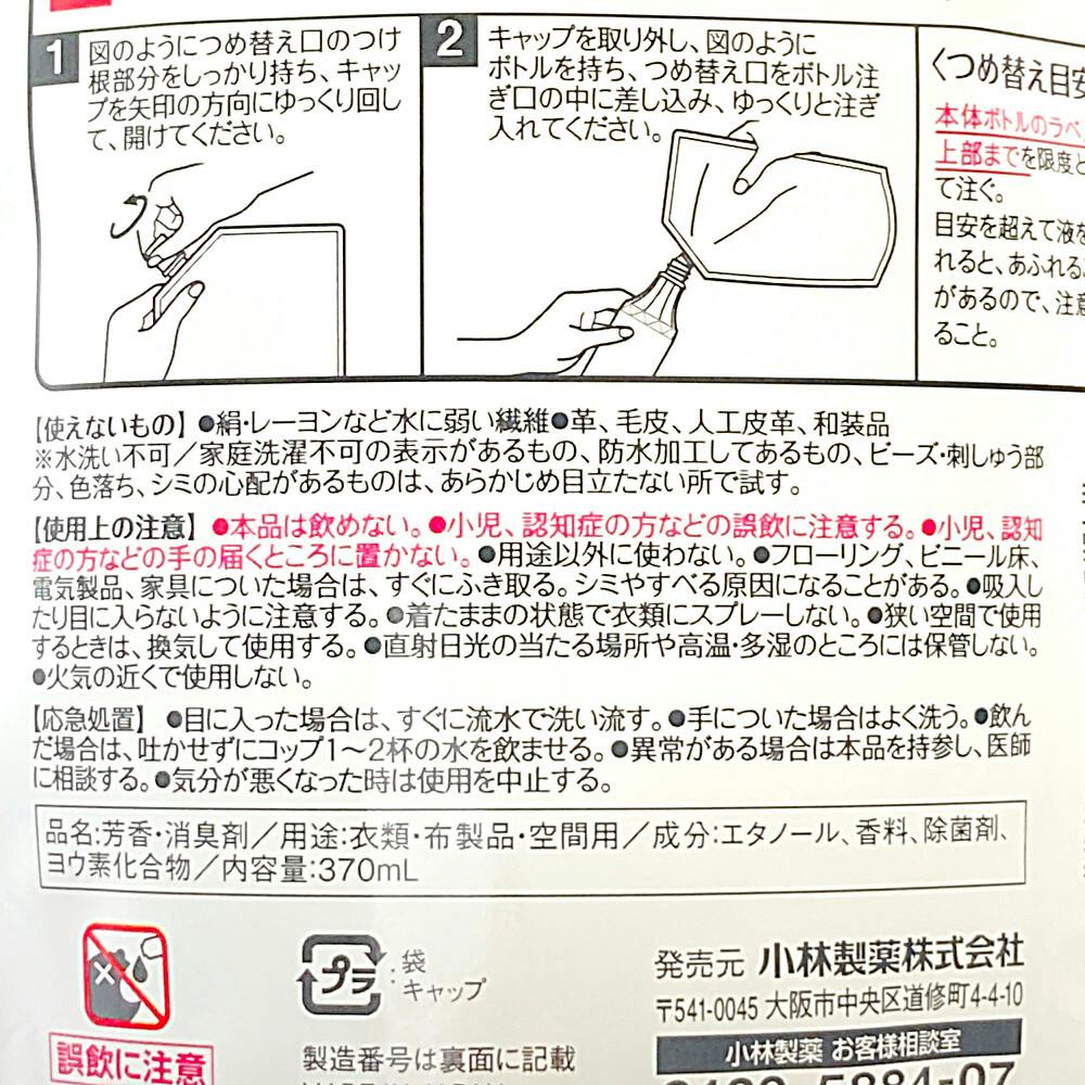 小林製薬 サワデーパルファム 空間と布に使える香りのミスト 詰替 370ml パルファムノアール