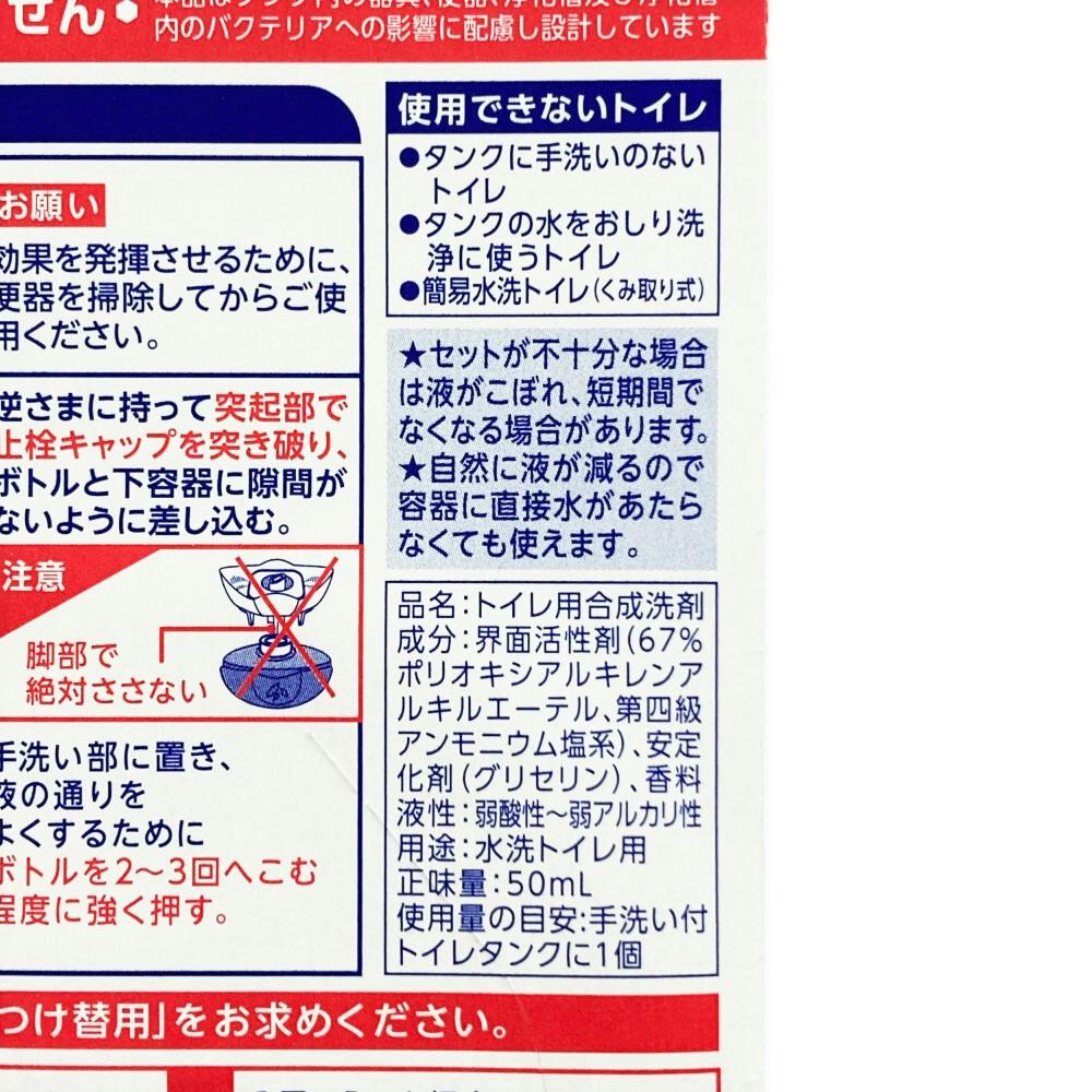 ●便器やタンクに影響を与えません/本品はタンク内の器具、便器、浄化槽及び浄化槽内のバクテリアへの影響に配慮し設計しています ●使用量の目安:手洗い付トイレタンクに1個