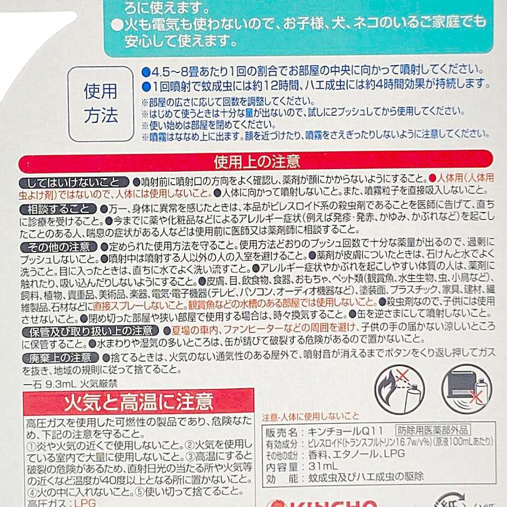●スッキリ清涼感、ハッカの香り●1日1プッシュ●130回用●12時間殺虫効果持続●広い部屋にも、9~16畳には2プッシュ