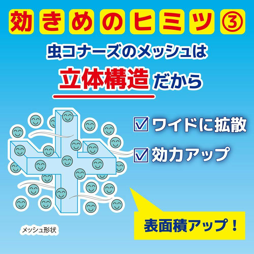 ●数量限定お得なペアパック。ベランダ用(プレートタイプ)+玄関用。●吊るすだけの簡単虫よけ。●メッシュの中に薬剤が練り込んであり、約366日間効果を発揮、屋内へのイヤな虫の侵入を防ぐためにご使用ください。