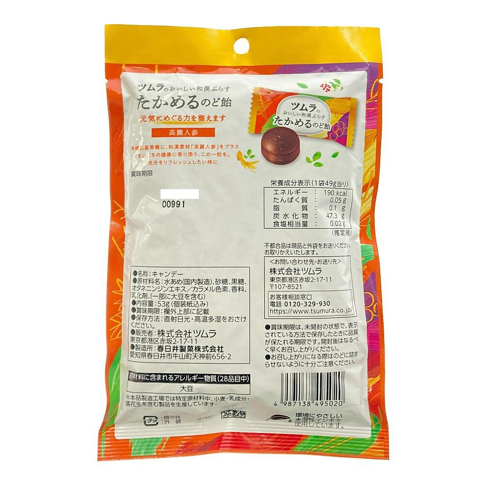 ツムラのおいしい和漢ぷらす たかめるのど飴 53g
