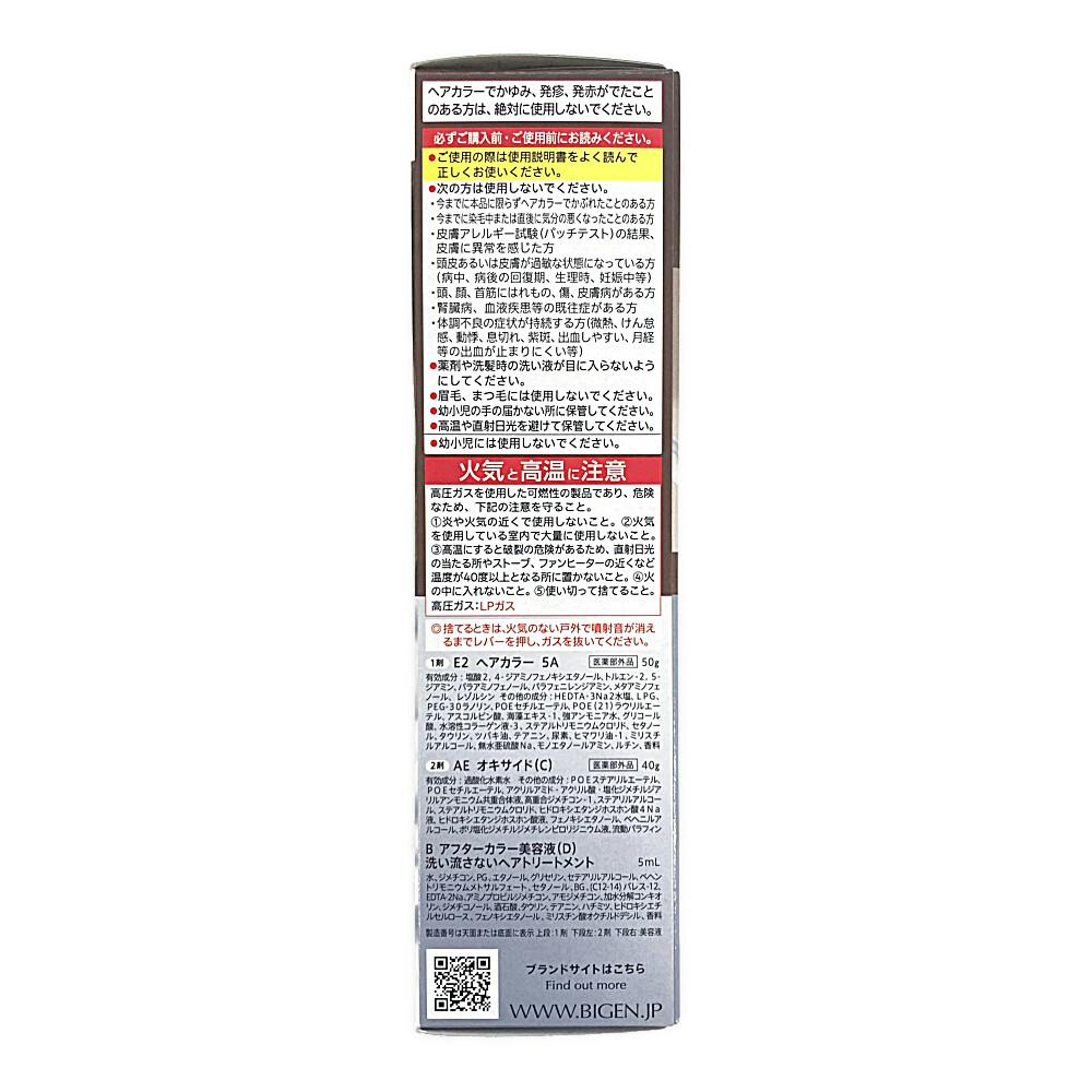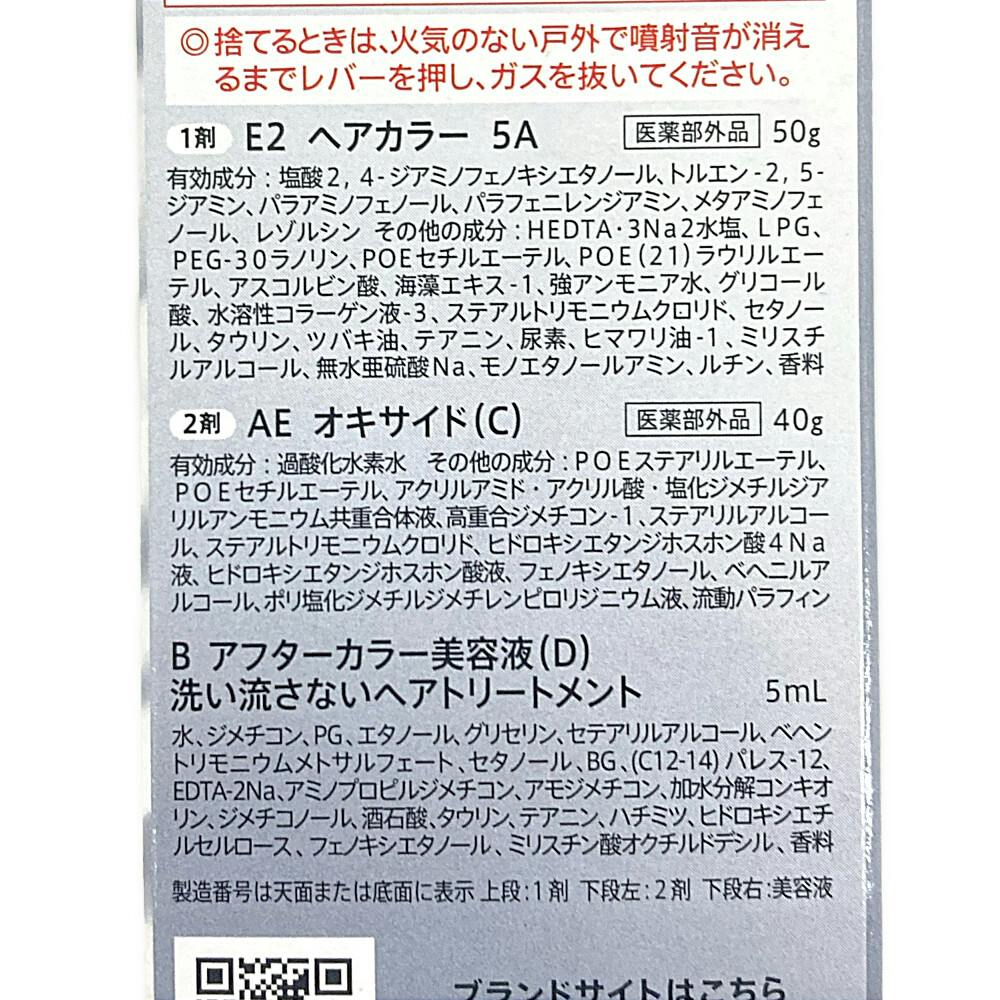1剤 E2 ヘアカラー 5A:50g、2剤 AE オキサイド (C):40g、B アフターカラー美容液(D)洗い流さないヘアトリートメント:5mL