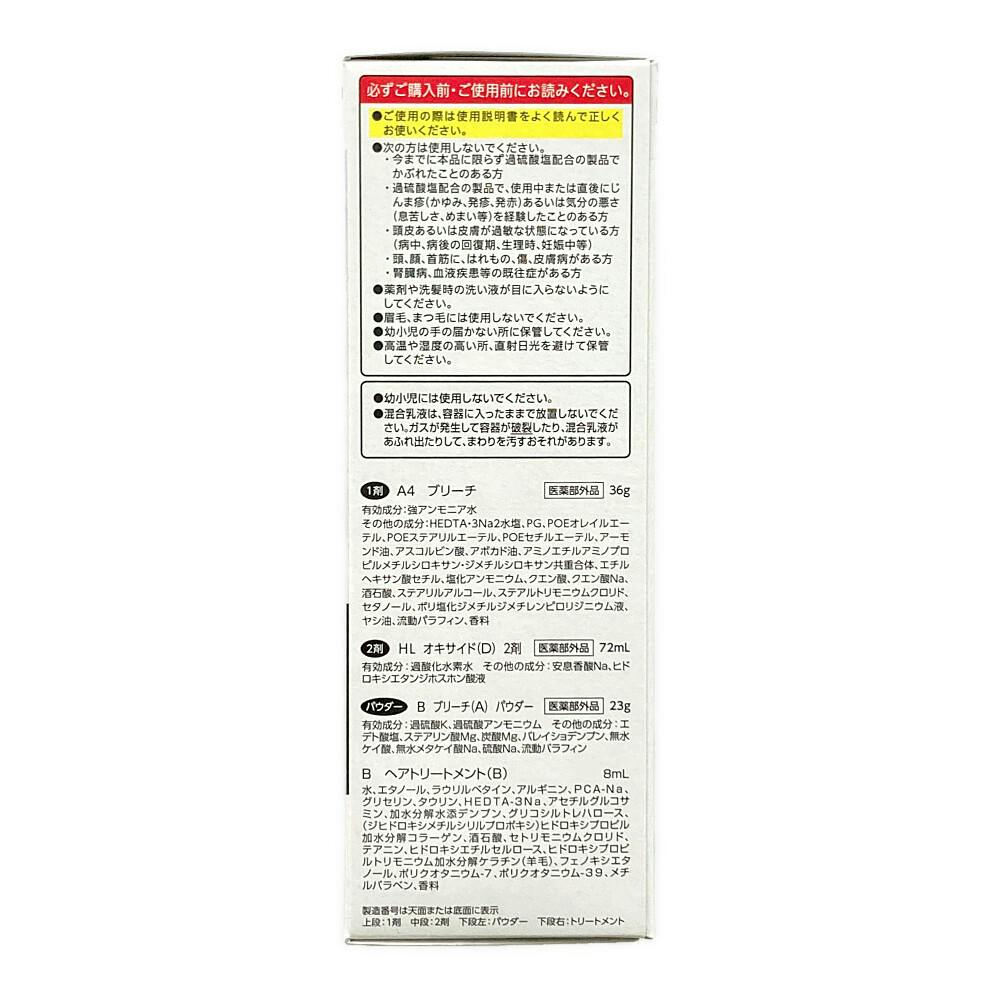A4 ブリーチ:36g、2剤 HL オキサイド(D) 2剤:72mL、B ブリーチ(A) パウダー:23g、B へアトリートメント(B):8mL