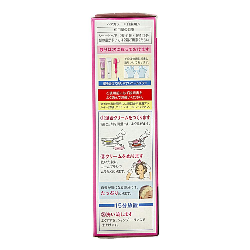 1.混合クリームをつくります/1剤と2剤を同量出しよく混ぜます 2.クリームをぬります/乾いた髪にコームブラシでムラなくぬります(白髪が気になる部分にはたっぷりぬります) 15分放置 3.洗い流します。よくすすぎ、シャンプー・リンスで仕上げます