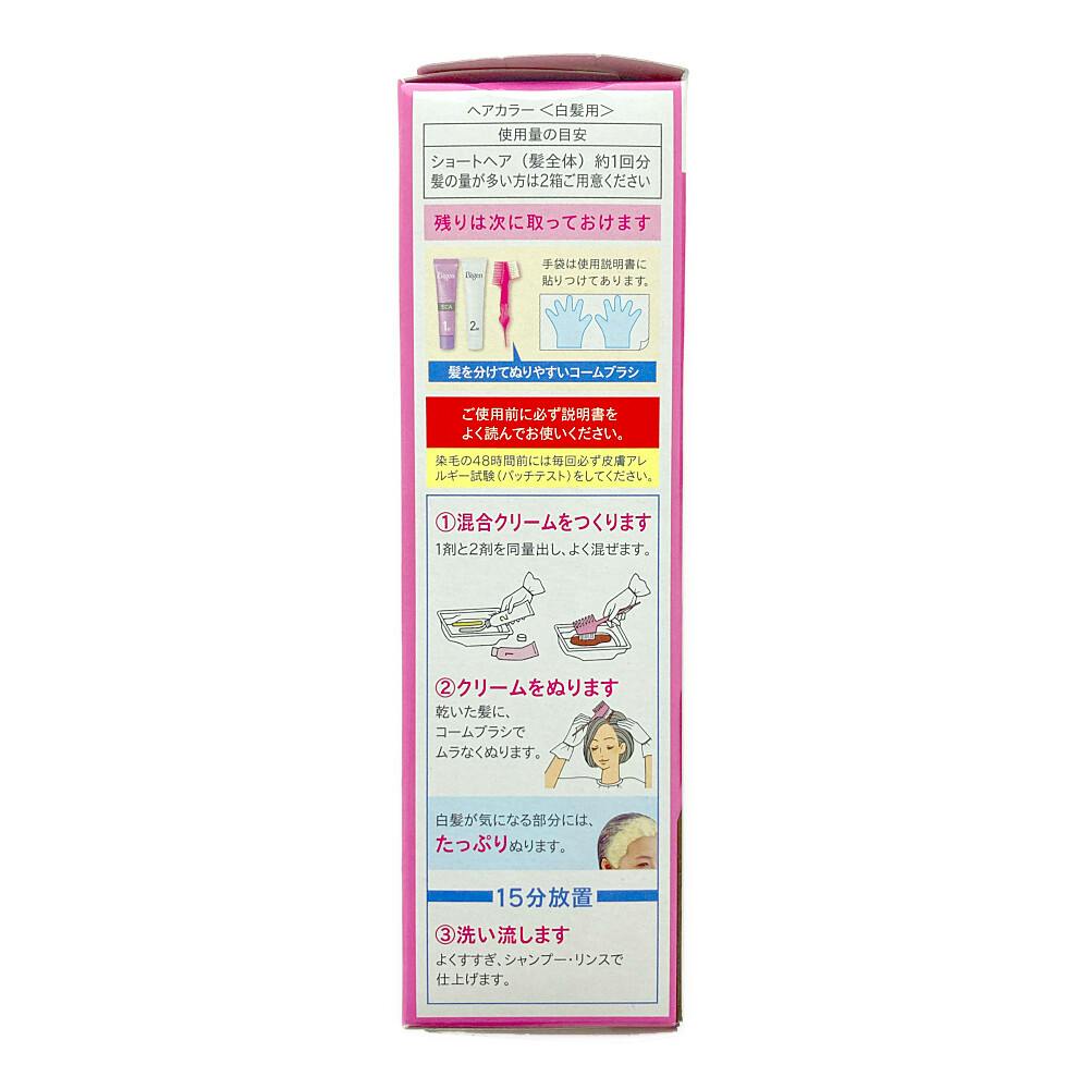 1.混合クリームをつくります。1剤と2剤を同量出し、よく混ぜます。2.クリームをぬります。乾いた髪に、コームブラシでムラなくぬります。15分放置。3.洗い流します。よくすすぎ、シャンプー・リンスで仕上げます。