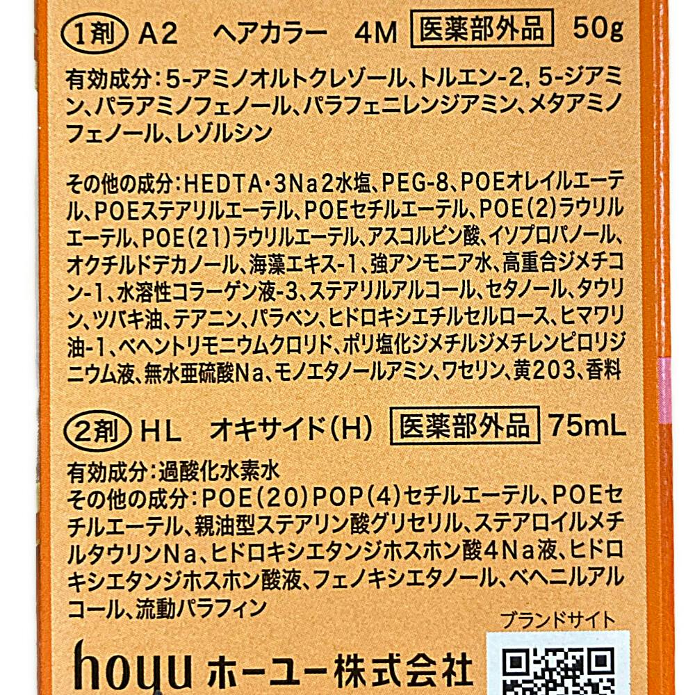 ●1剤(A2ヘアカラー 4M)50g ●2剤(HL オキサイド(H))75mL