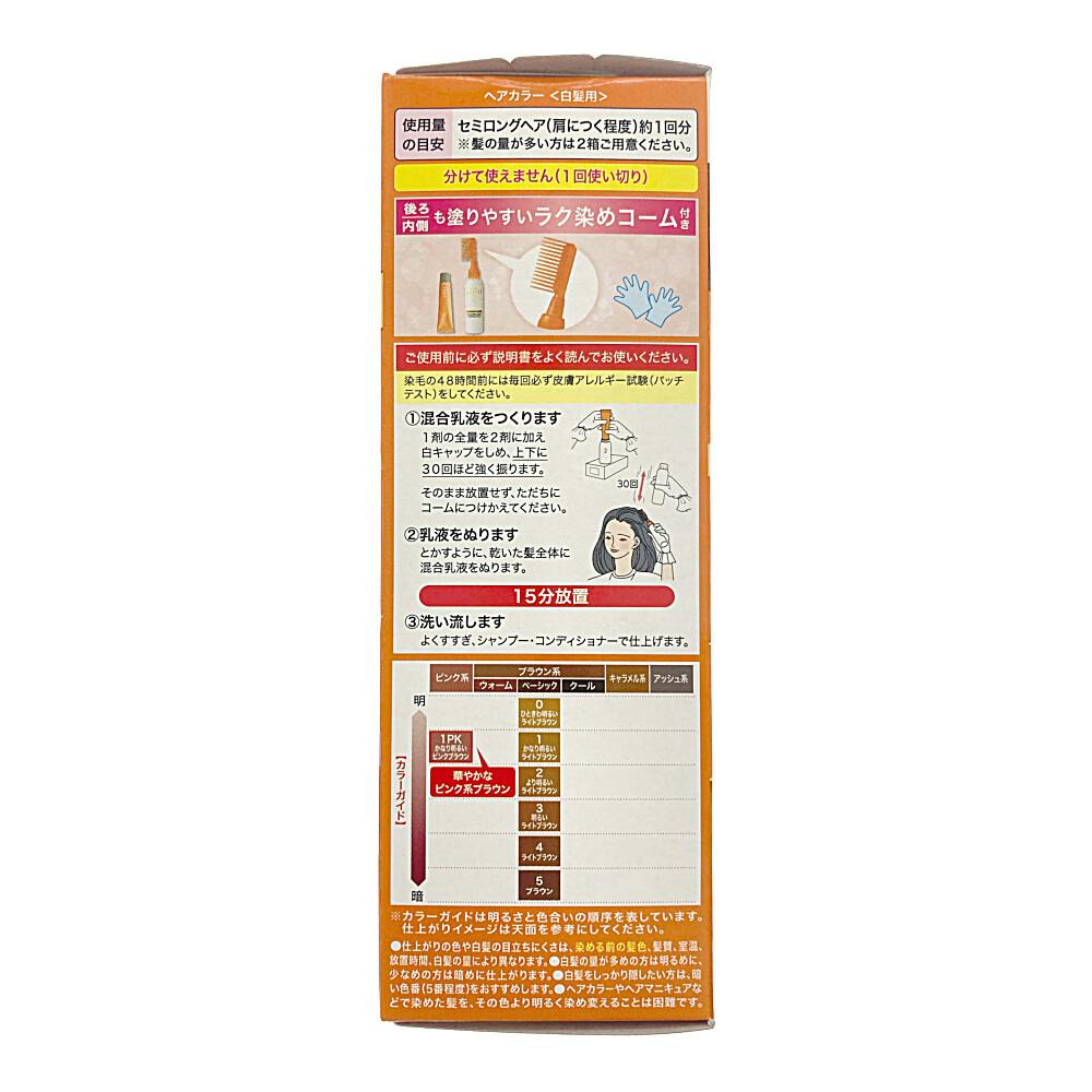 ●浸透リッチカラー処方/染料が毛髪内部に深く浸透。髪色リッチな仕上がり ●伸びがよく密着するなめらか乳液 ●美しい髪色のために。6種類のこだわり成分配合/色持ち成分:テアニン・タウリン、ツヤ成分:ツバキ油・ヒマワリ油、うるおい成分:海洋コラーゲン・海藻エキス