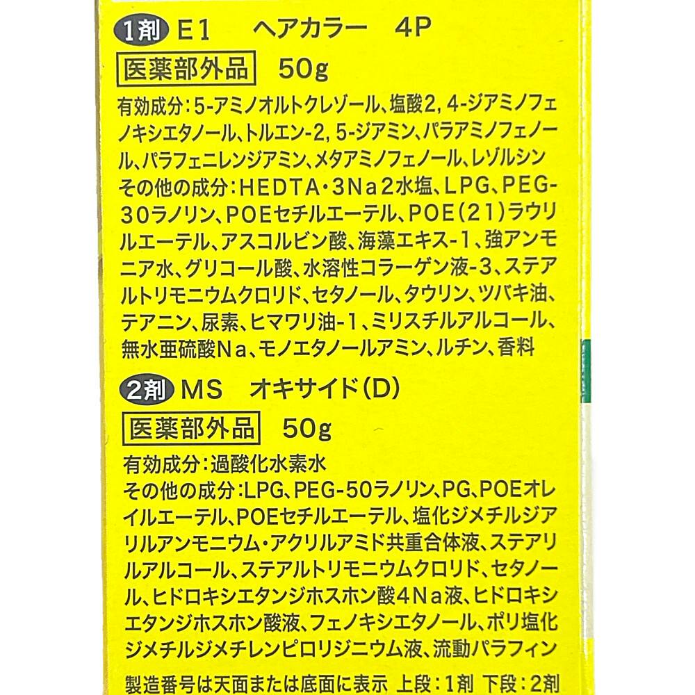 1剤 E1 ヘアカラー:50g、2剤 MS オキサイド(D):50g