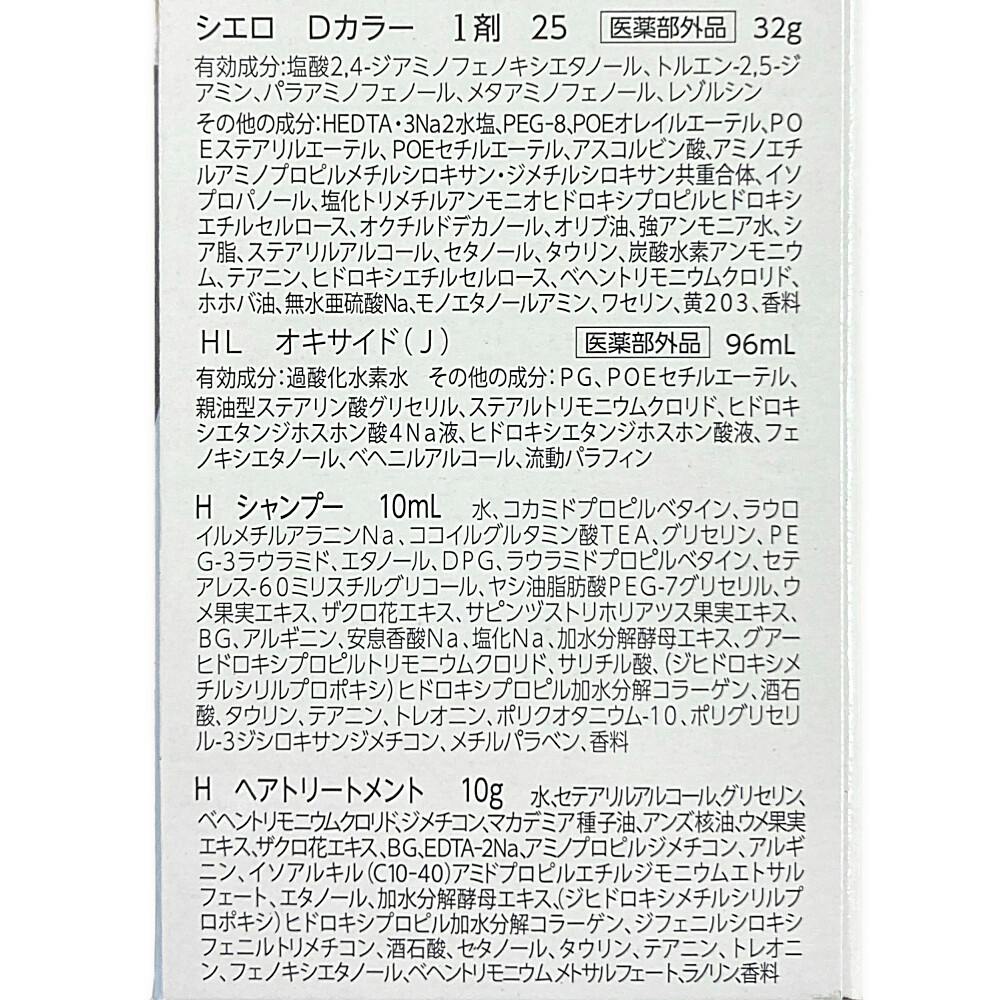 Dカラー 1剤:32g、オキサイド(J):96mL、シャンプー:10mL、ヘアトリートメント:10g
