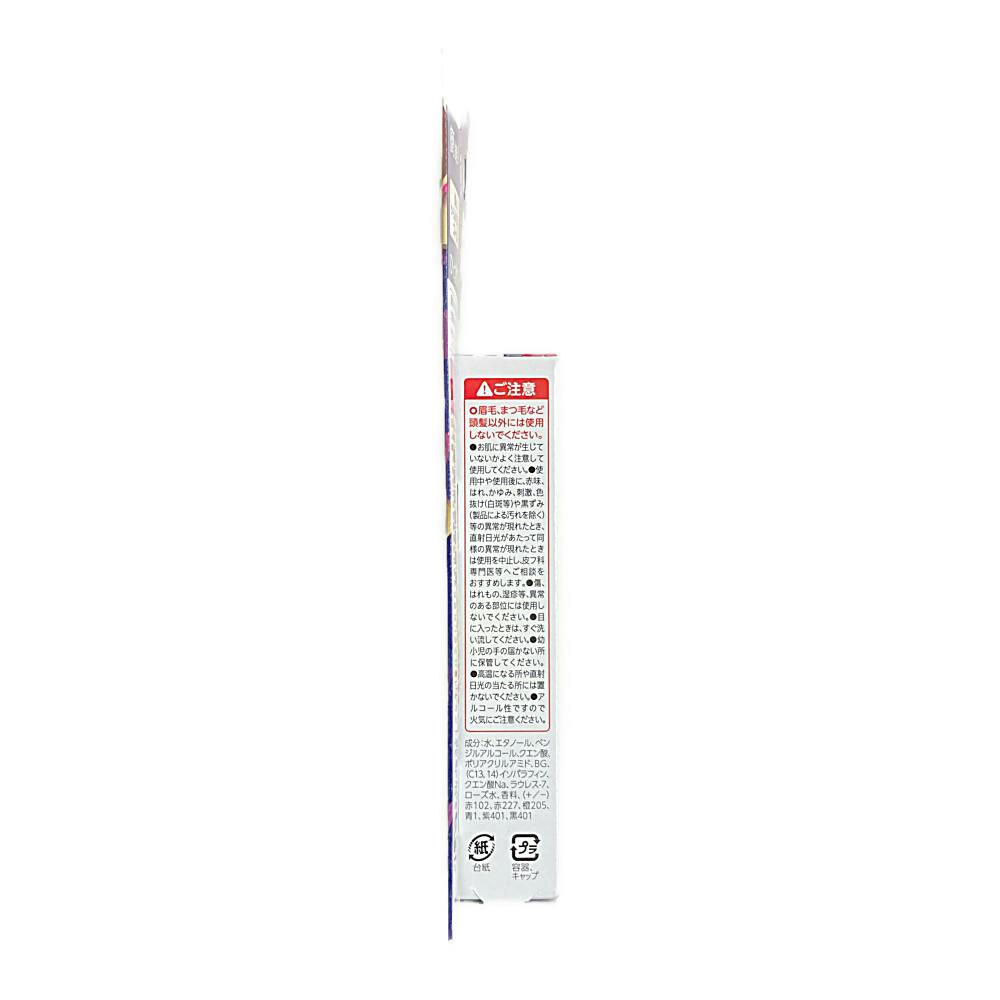 水、エタノール、ベンジルアルコール、クエン酸、 ポリアクリルアミド、BG、(C13,14)イソパラフィン、クエン酸Na、ラウレス-7、 ローズ水、香料、(+/-)赤102、赤227、 橙205、 青1、 紫401、 黒401