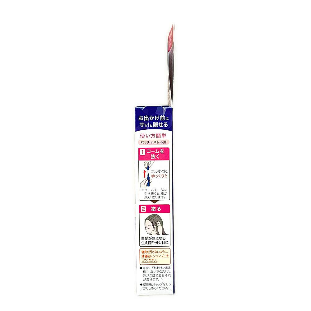 1.コームを抜く。まっすぐにゆっくと。※コームを一気に引き抜くと、液が飛び散ります。2.塗る。白髪が気になる生え際や分け目に。