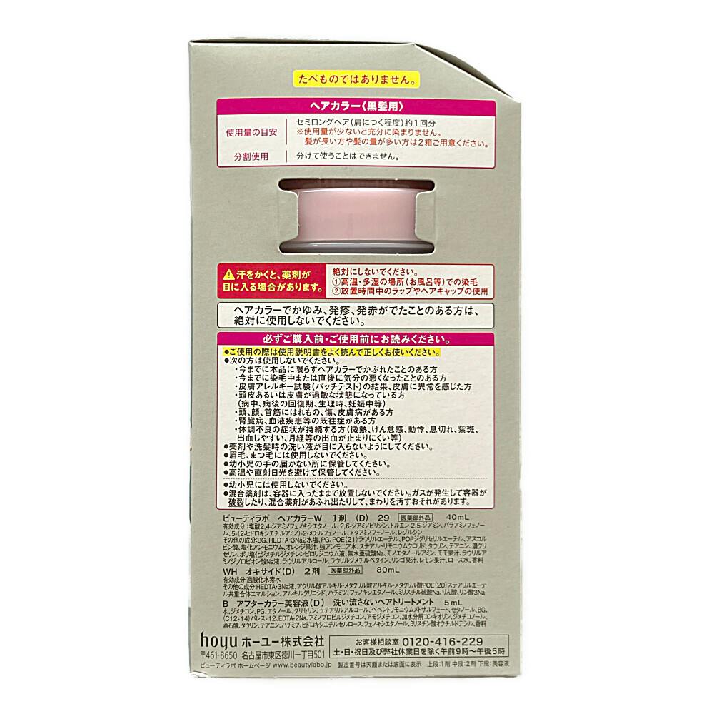 ヘアカラーW 1剤:40mL、WH オキサイド(D)2剤:80mL、アフターカラー美容液(D)洗い流さないトリートメント:5mL