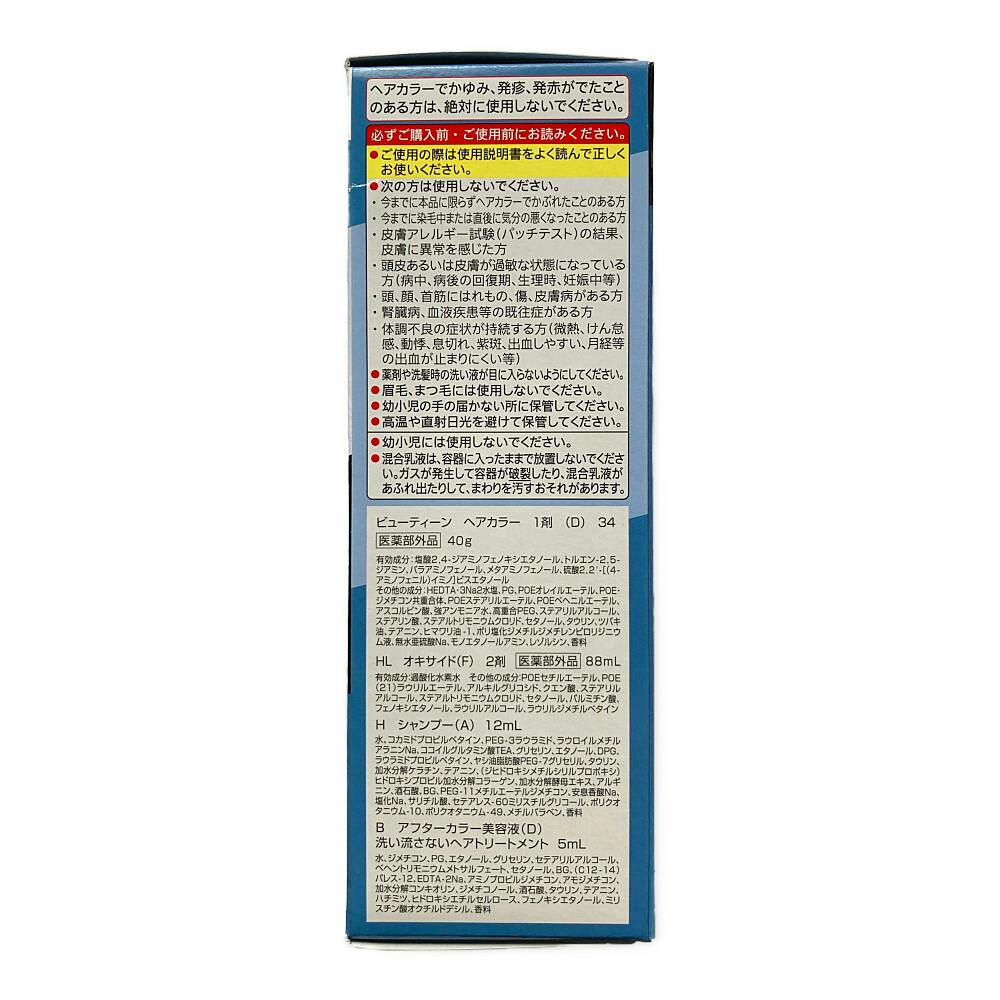 ●ビューティーンヘアカラー 1剤(D)34/40g●HLオキサイド(F) 2剤/88mL●Hシャンプー(A)/12mL●Bアフターカラー美容液(D)/5mL