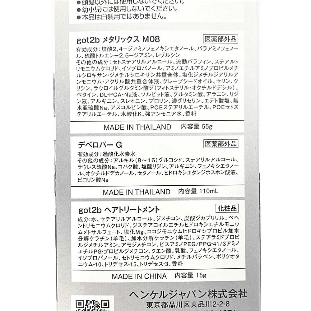 got2b メタリックス M08:55g、デベロパー G:110mL、got2b ヘアトリートメント:15g