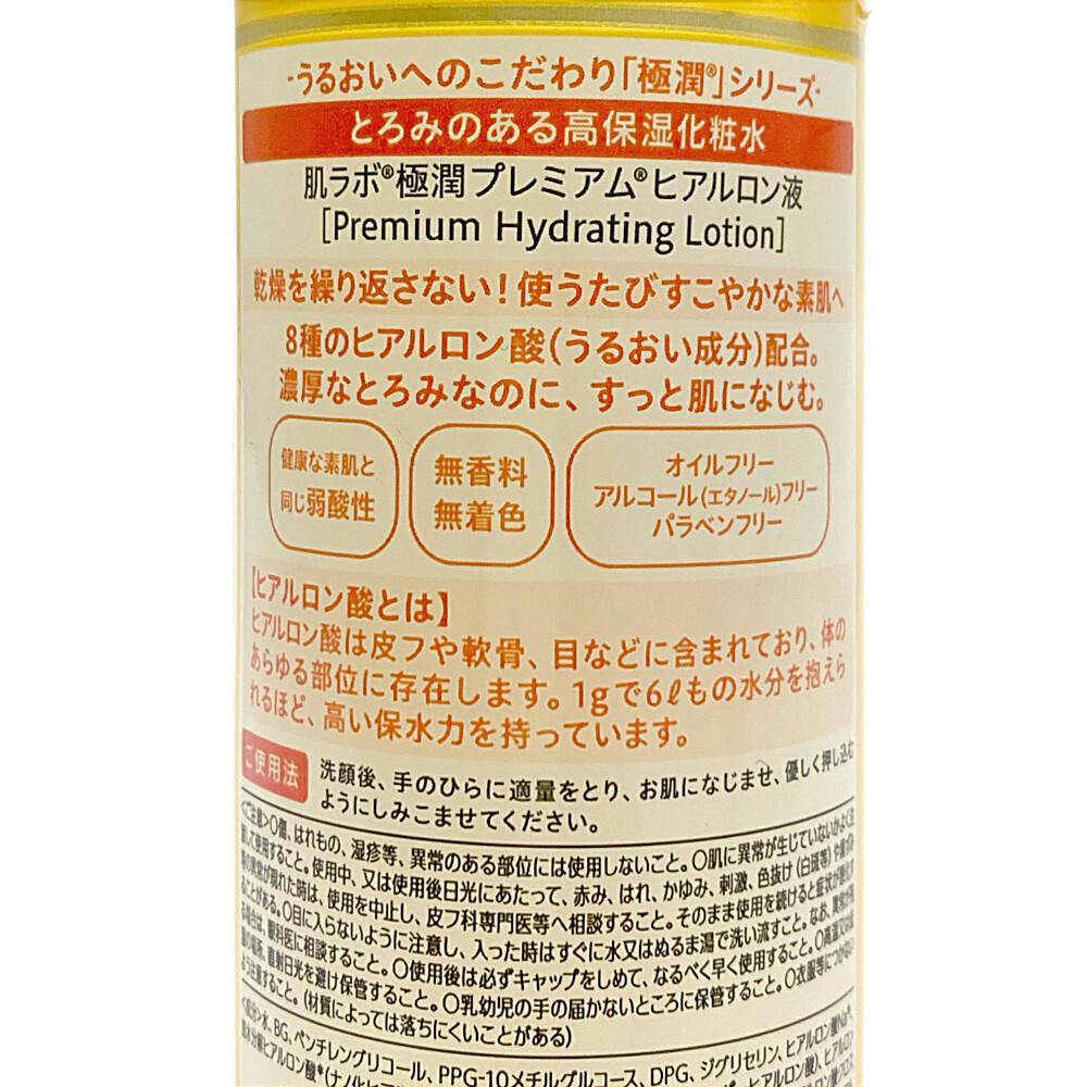 ●美容液級のうるおいを追求した、「極潤プレミアム」。うるおい成分であるヒアルロン酸と、濃い使用感にこだわり抜きました。●弱酸性。無香料・無着色・オイルフリー・アルコール(エタノール)フリー・パラベンフリー。