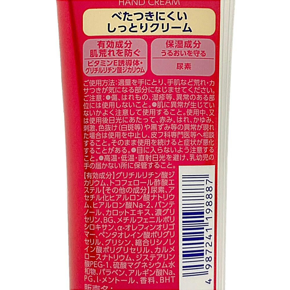 ●べたつきにくいしっとりクリーム ●有効成分(肌荒れを防ぐ)/ビタミンE誘導体・グリチルリチン酸ジカリウム ●保湿成分(うるおいを与える)/尿素