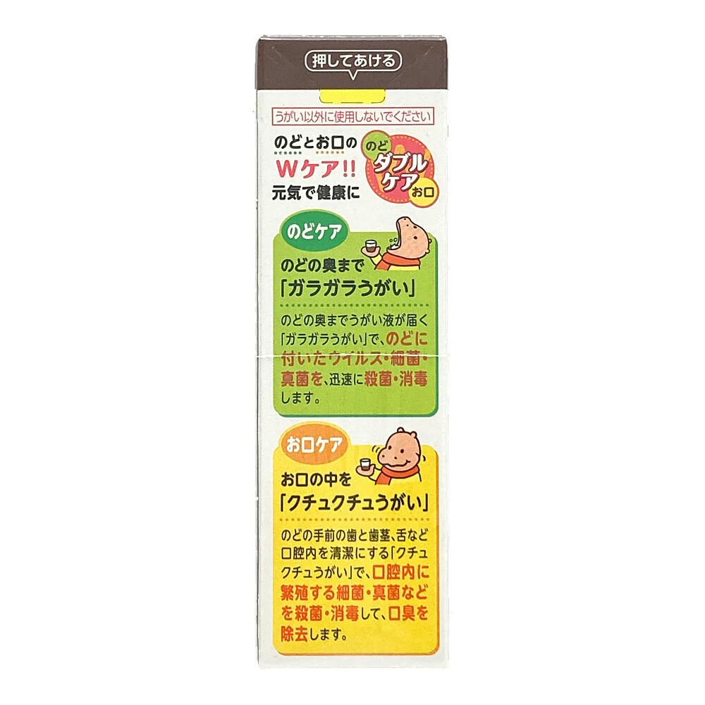 ●のどとお口のWケア!!元気で健康に ●のどの奥まで「ガラガラうがい」/のどの奥までうがい液が届く ●お口の中を「クチュクチュうがい」/のどの手前の歯と歯茎、舌など口腔内を清潔にする