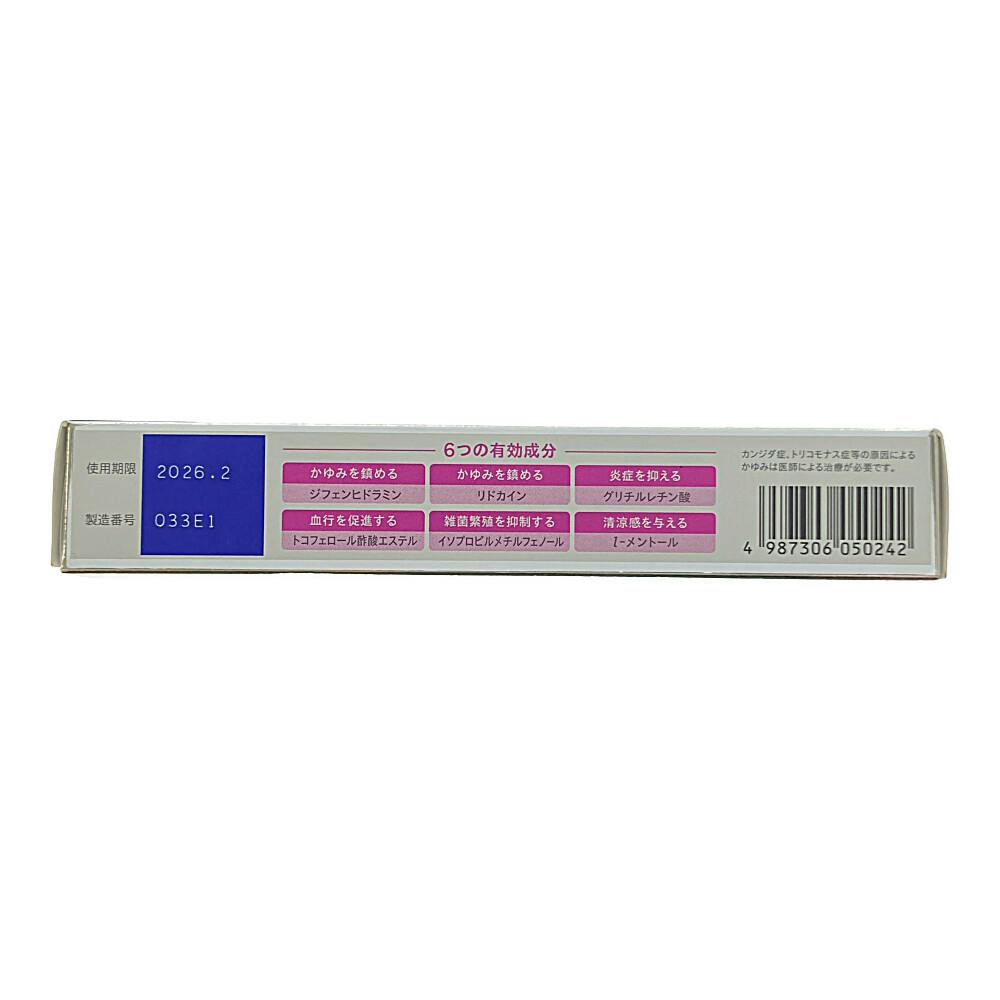 ジフェンヒドラミン1g、リドカイン2g、グリチルリチン酸1g、トコフェロール酢酸エステル0.5g、イソプロピルメチルフェノール0.1g、lメントール0.5g