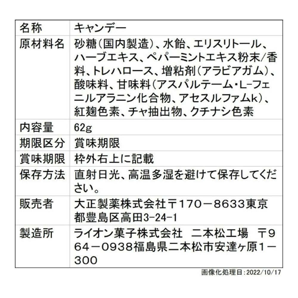砂糖(国内製造)、水飴、エリスリトール、ハーブエキス、ペパーミントエキス粉末